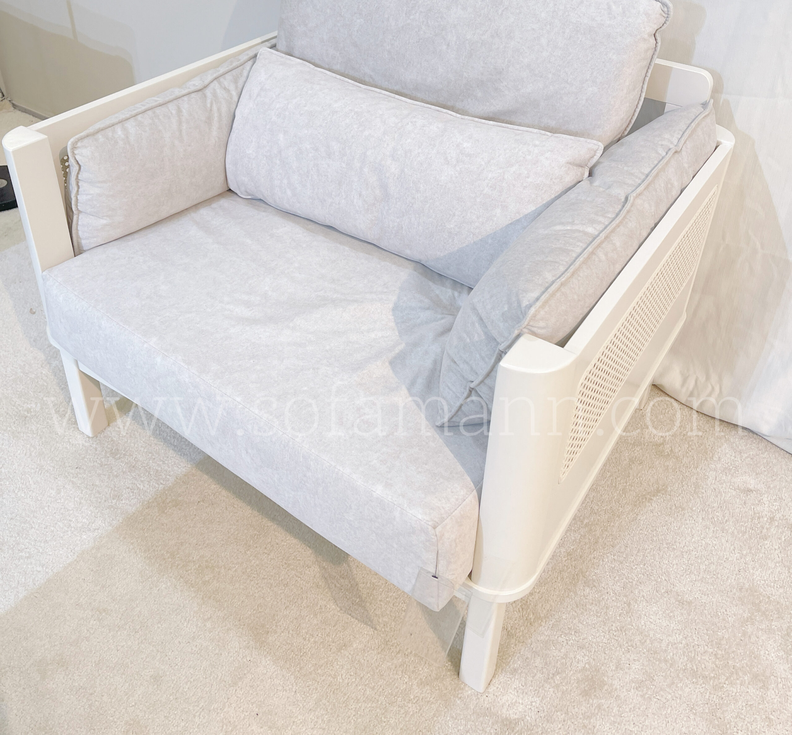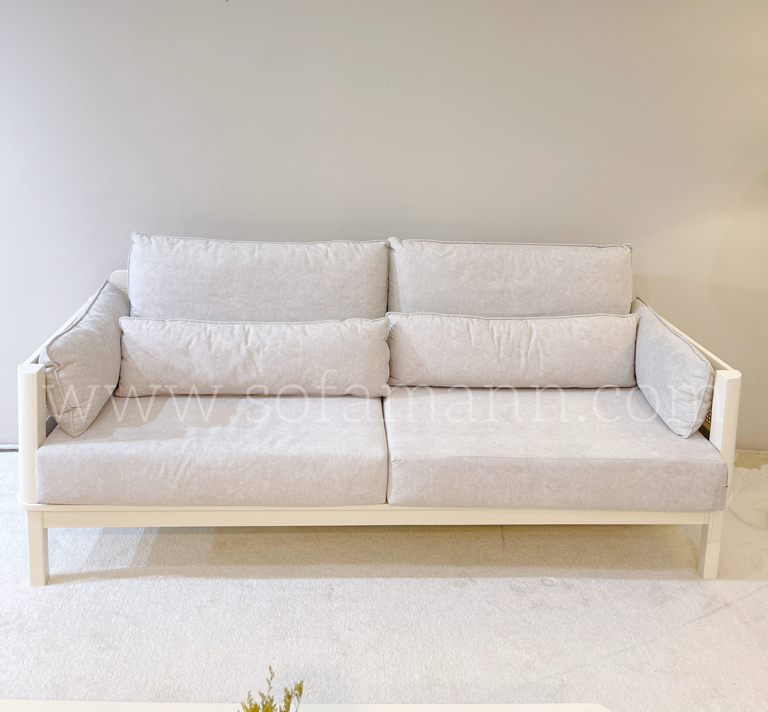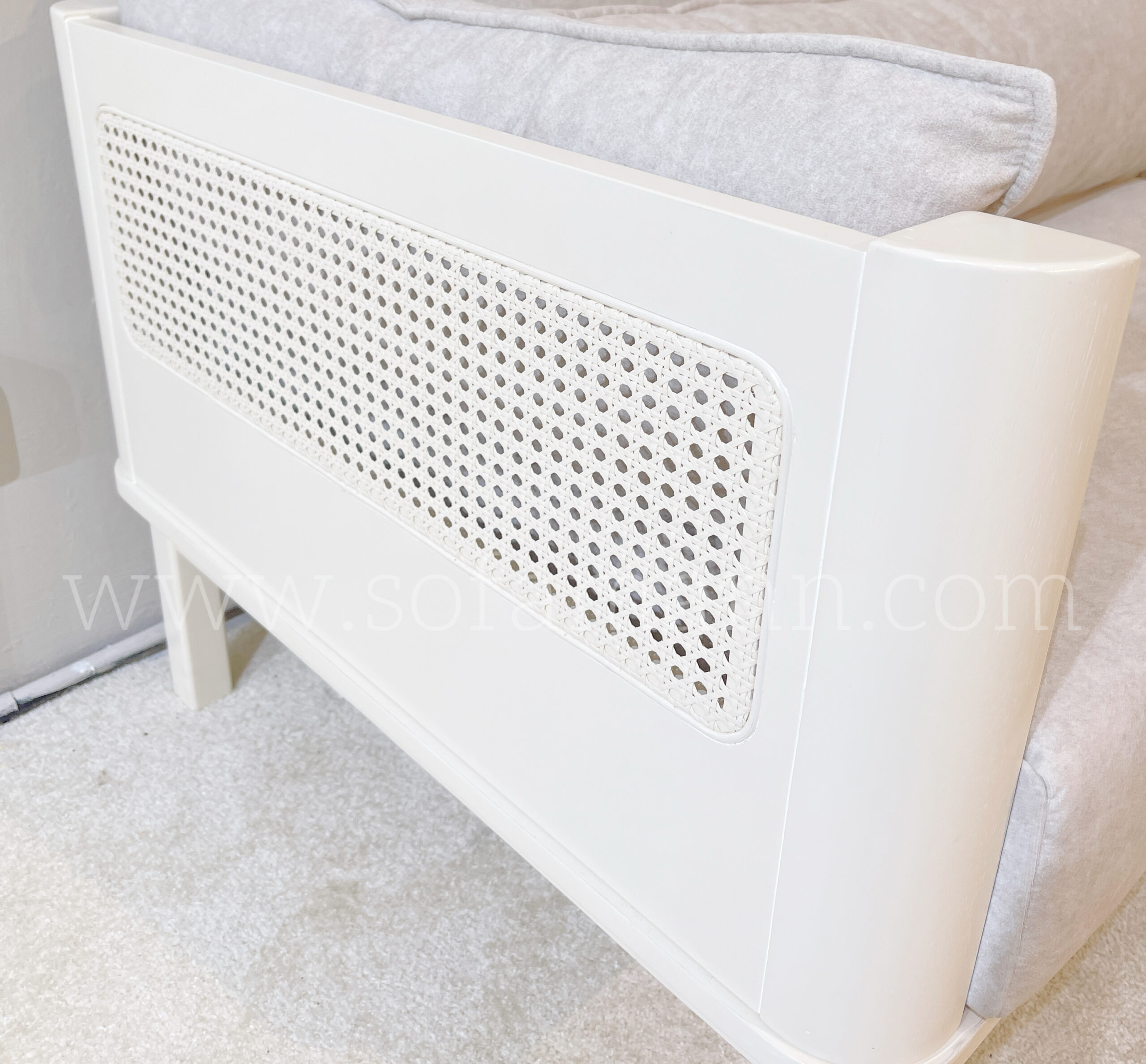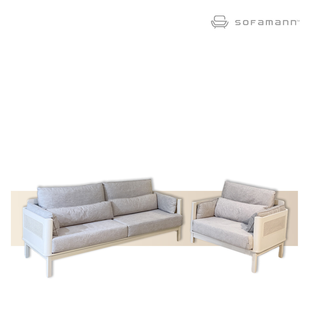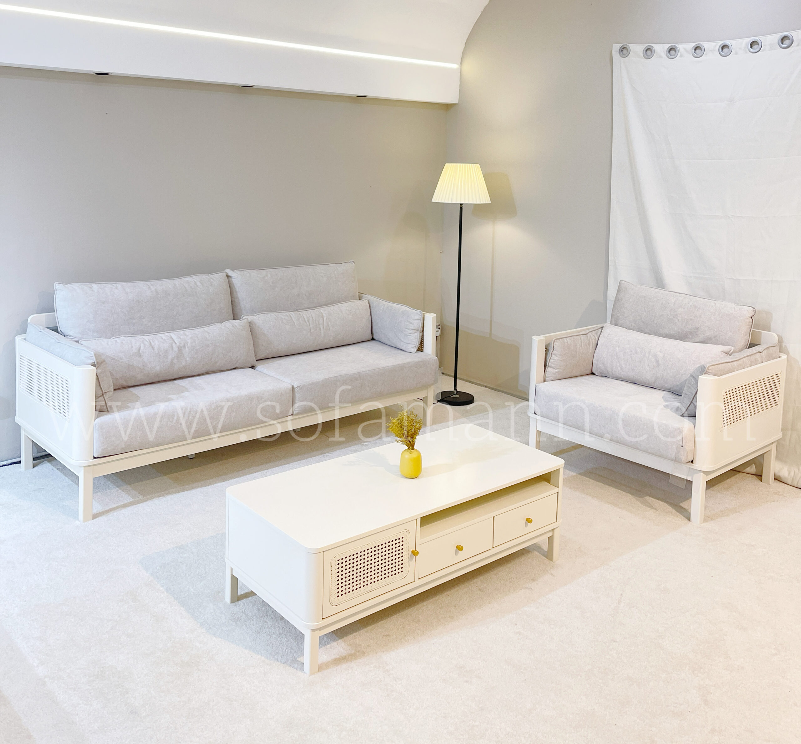 “This modern sofa set combines elegant paper rattan detailing, a sturdy rubber wood frame, and clean plain MDF panels to create a stylish, minimalist, and durable design. Paired with thick, soft cushions in a neutral tone, it enhances any living space while providing exceptional comfort for everyday relaxation.”
