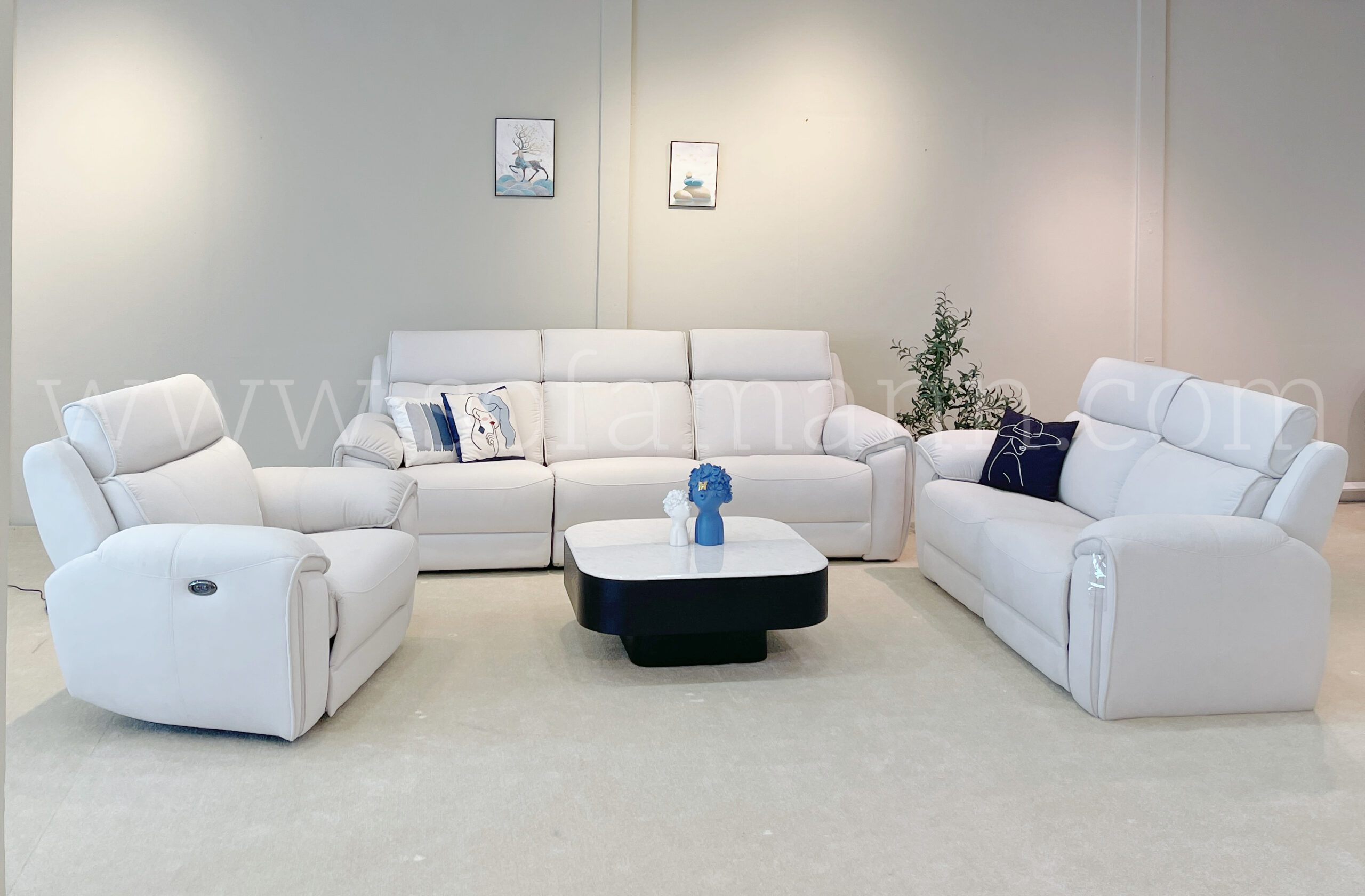 Speciality of this full set sofa have Power Recliner Can Used As Regular Chair Can Also Be Opened Into A Sofa With A Reclining Position. Its Make Comfortable And Improve Blood Flow Throughout The Body.Using Easy Clean Fabric which is trending nowadays make its look modern and .Benefits Of Easy Clean and Anti Scratch ( Anti Cakar Kucing Dan Anti Air Kopi Tumpah) Also Ink Pen Its Help To Remover Easyly. From Meranti Wood Frame upgrade to Lime Wood(Kayu Kapur) Its Can Be Long Last. Provide With Warranty. Can Make You And Your Family Enjoy And Its Helps To Mind Relaxing All The Time.